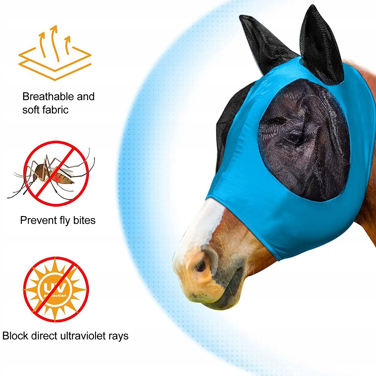. МАСКА НАСЕКОМОГО ДЛЯ ЛОШАДИНОЙ ЛИЦЫ С УШАМИ, РАСТЯЧИВАЯСЯ, ДЫШАЩАЯ