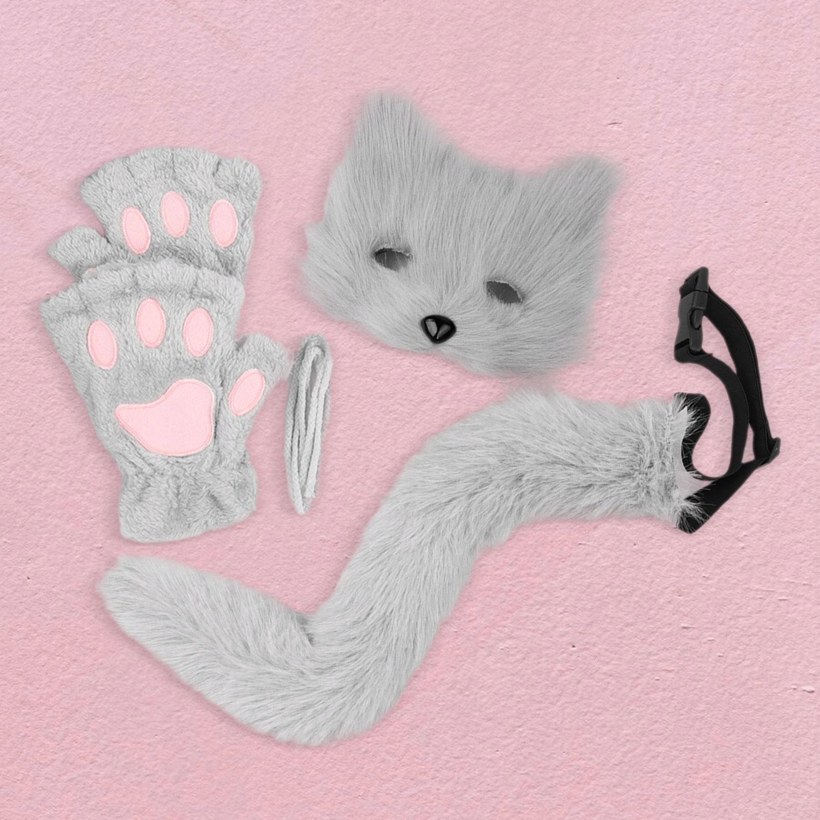 Маска и термовой хвост, установленные для девочек, очаровательных для маски для вечеринок на Хэллоуин, серый