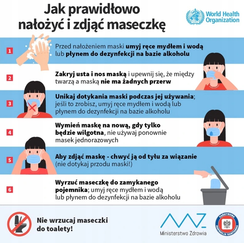 Чтобы маска эффективно выполняла свою функцию, необходимо правильно надеть ее на лицо. Не забудьте тщательно вымыть руки с дезинфицирующим средством перед тем, как надеть новую маску.