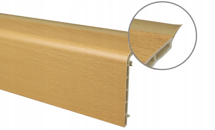 Плинтус оснащен уплотнительной кромкой вверху, что обеспечивает оптимальное прилегание к стене даже при небольших неровностях.