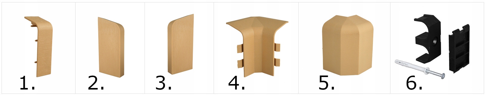 Доступны следующие варианты: внешние и внутренние углы, соединители, левая и правая торцевые заглушки, соединители и регулируемые ручки, которые имеются в наличии. на других наших аукционах.