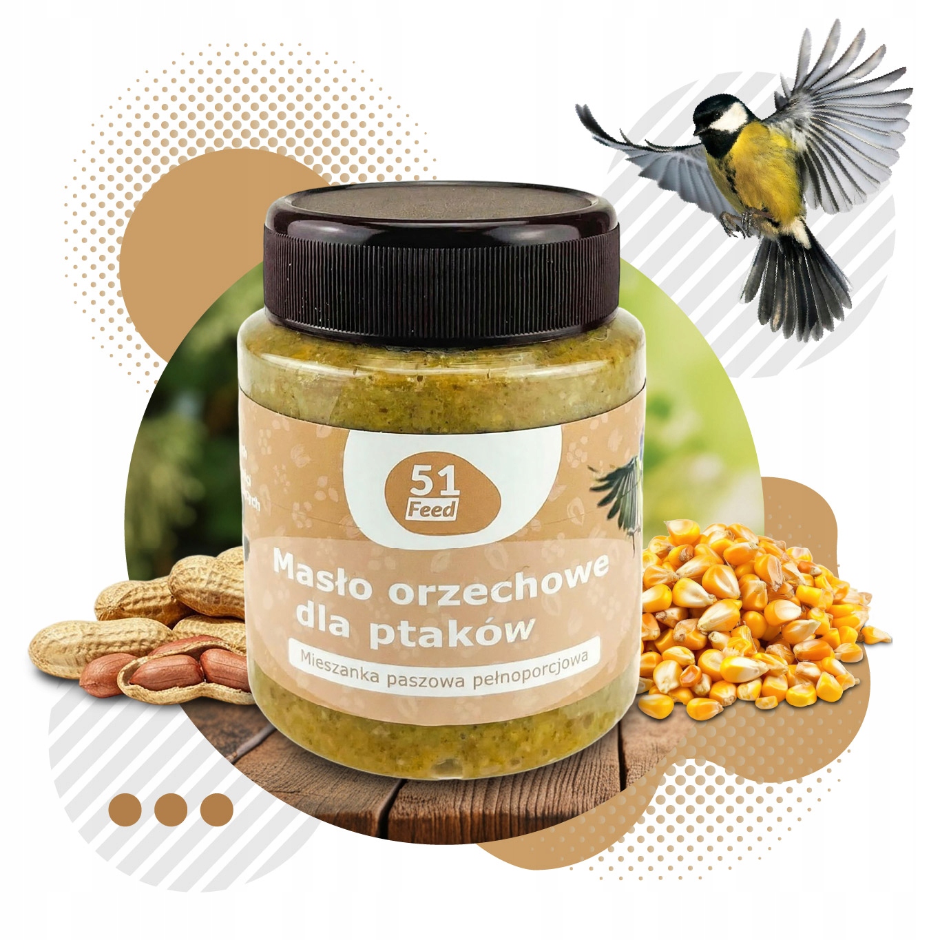 Высокоэнергетический универсальный дополнительный корм для птиц в виде арахисовой пасты с добавлением жира и семян. 100% натуральный продукт, без консервантов и без добавления соли.