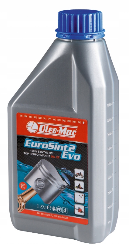 С некоторых пор мы предлагаем новое синтетическое масло, предназначенное для смазки двухтактных двигателей Eurosint2 EVO. Маркировка класса качества масла, указанная на упаковке, не указывает на какие-либо различия между новым маслом и доступным в настоящее время маслом (EUROSINT2). Однако они существенны и касаются параметров масла, связанных с физическими свойствами, снижающими износ взаимодействующих компонентов двигателя, смазываемых этим маслом. Этим параметром является динамическая вязкость и плотность масла. Эти значения при рабочей температуре двигателя (110 ºC) значительно превышают значения, имеющиеся в предлагаемых до сих пор маслах. Это оказывает принципиальное влияние на долговечность масляной пленки и ее устойчивость к разрыву, а следовательно, и на срок службы узлов двигателя, смазываемых маслом EUROSINT2 EVO. Помните, что это масло используется в смеси 50:1.
