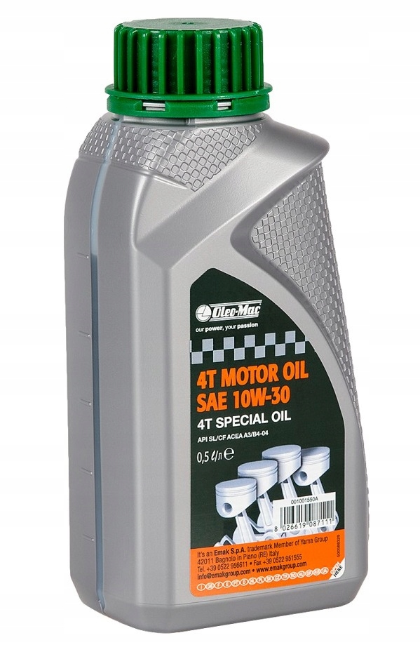 Минеральное масло Oleo-Mac SAE 10W-30, созданное и разработанное для четырехтактных двигателей с воздушным и водяным охлаждением, используемых в садоводстве.