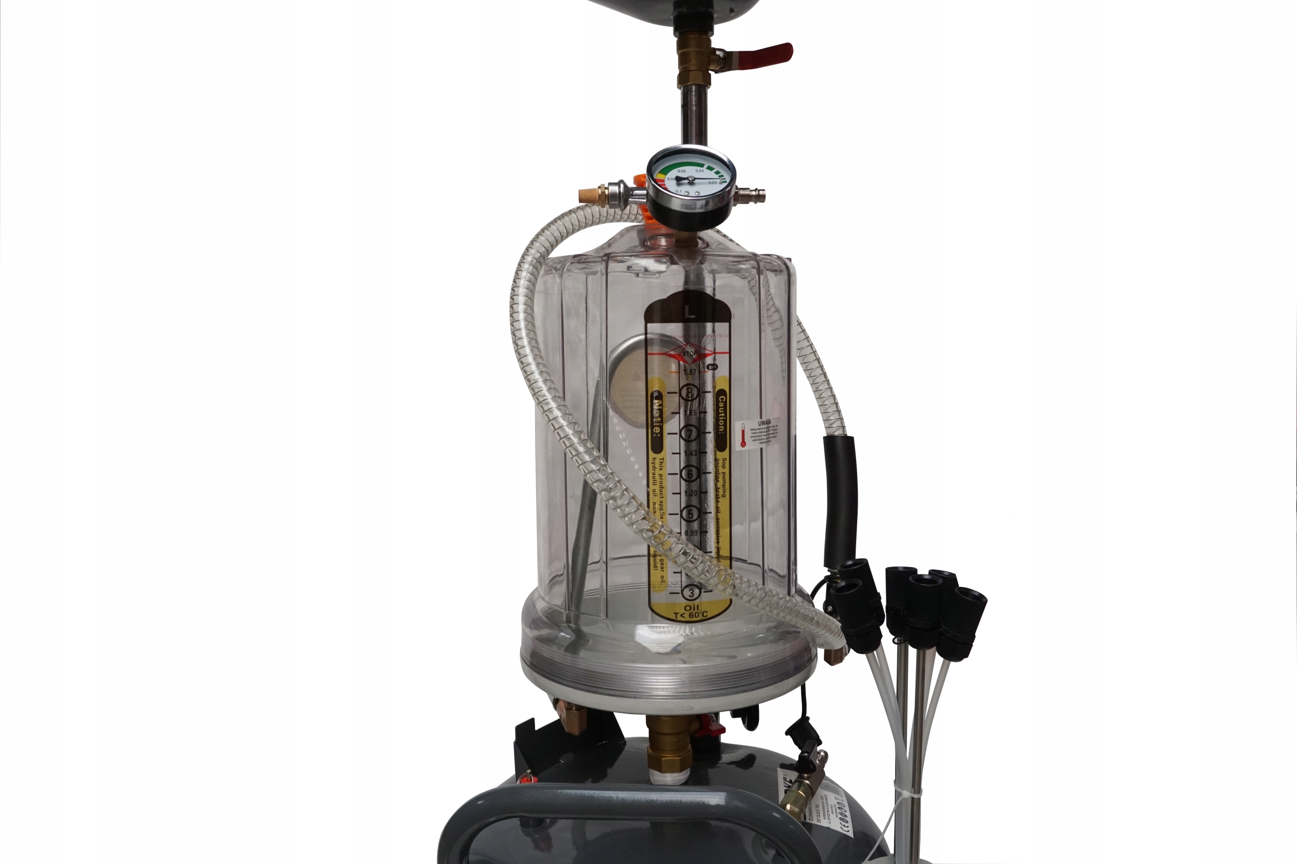 Пневматическая мойка и отсос Verke — профессиональное устройство для гравитационного слива отработанного масла из двигателей, коробок передач и дифференциалов всех типов транспортных средств. Он сочетает в себе функции мойки и устройства замены масла. Идеально подходит для замены масла – позволяет как заливать, так и откачивать смазку изнутри двигателя. Благодаря дополнительным насадкам и всасывающим щупам замена масла пройдет быстро и без проблем. Вместе с пылесосом вы получите комплект из шести всасывающих шлангов, которые значительно облегчат вашу работу. Четыре гибких и два металлических всасывающих патрубка изготовлены из высококачественных материалов, что обеспечивает идеальную герметичность и отличную пропускную способность. Посмотрите, насколько просто пользоваться этим устройством. Удобные колеса и практичная ручка позволяют легко перемещать данное устройство в любое место мастерской, а функция самослива делает удаление масла легким и чистым.