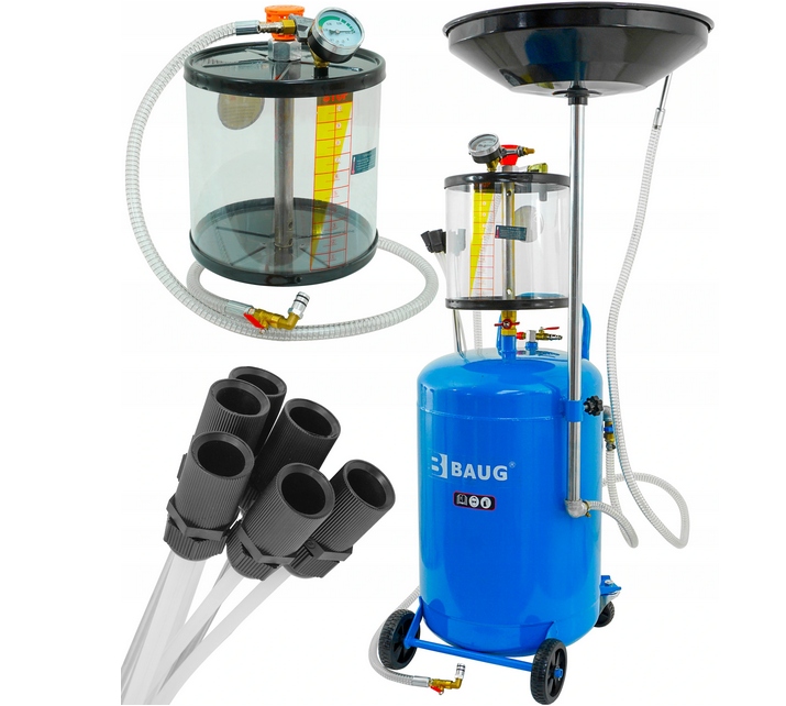 Пневматическая моечная и аспирационная машина BAUG – профессиональное устройство, предназначенное для гравитационного слива отработанного масла из двигателей, коробок передач и дифференциалов всех типов транспортных средств. Он сочетает в себе функции мойки и устройства замены масла. Идеально подходит для замены масла – позволяет как заливать, так и откачивать смазку изнутри двигателя. Благодаря дополнительным насадкам и всасывающим щупам замена масла пройдет быстро и без проблем. Вместе с пылесосом вы получите комплект из пяти всасывающих шлангов, которые значительно облегчат вашу работу. Четыре гибких и два металлических всасывающих патрубка изготовлены из высококачественных материалов, что обеспечивает идеальную герметичность и отличную пропускную способность. Посмотрите, насколько просто пользоваться этим устройством. Удобные колеса и практичная ручка позволяют легко перемещать данное устройство в любое место мастерской, а функция самослива делает удаление масла легким и чистым.