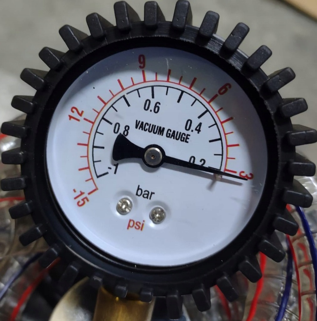 ✅ Наглядный манометр показывает достигнутое отрицательное давление в резервуаре.
