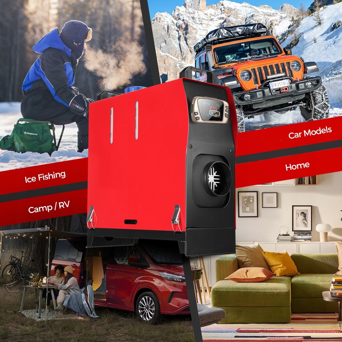 Независимо от высоты или низких температур, этот портативный дизельный обогреватель для автодома обеспечит постоянное отопление, предварительный прогрев вашего автомобиля, поддержание тепла в салоне, предварительный прогрев двигателя и предотвращение замерзания окон. Идеально подходит для обогрева кабин грузовых автомобилей, фургонов, аккумуляторных грузовиков и других транспортных средств.