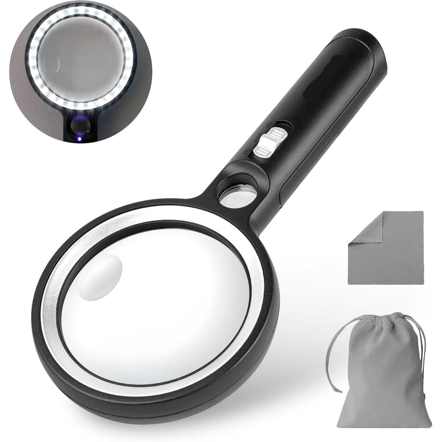 🔎 Встроенные -в 30 светодиодах обеспечивают дополнительное освещение в темной среде, а 1 УФ -светодиод позволяет идентифицировать банкноты, паспорта, изображения и геологические тесты. Переключатель/переключатель и источник питания с тремя батареями AAA (не включены). Инструкции по чтению, квитанции, рецепты, бутылки лекарств, чтение книг, газеты, журналы и другие мелкие принты. Лупа для пожилых людей также полезна в уроках природы и разведке природы для детей, чтобы стимулировать их любопытство к внешнему миру.