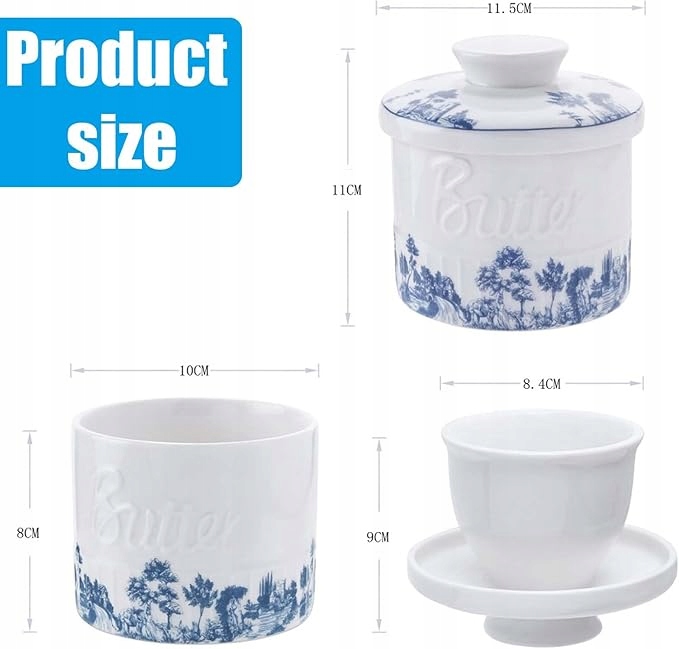 ☄️3. Винтажная керамическая емкость для французского масла изготовлена из высококачественной керамики. Он равномерно окрашен и подходит для холодильника и посудомоечной машины. 11 см в диаметре и 11 см в высоту для ежедневного семейного потребления масла.