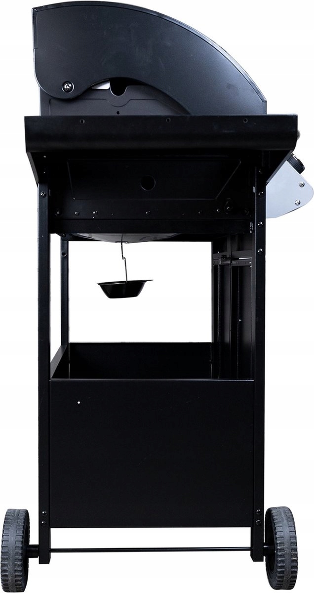 Газовый гриль можно легко передвигать, поскольку он имеет два фиксированных колеса с одной стороны и два поворотных колеса. на другой стороне . В устойчивом нижнем шкафу есть место для газового баллона и инструментов для гриля, а спереди даже имеется открывалка для бутылок.