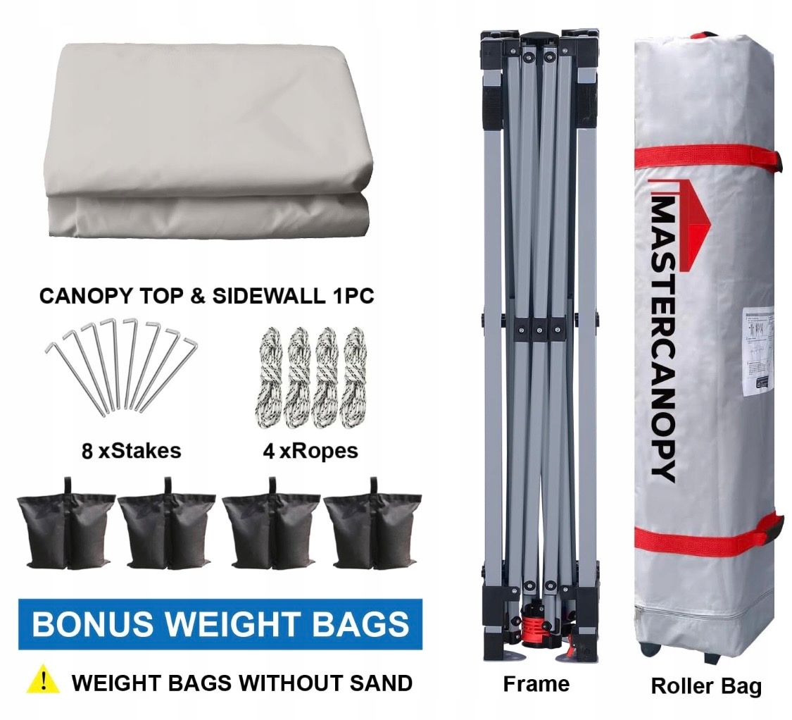 - Набор включает в себя: крыша, рама, 1 боковая стена, 4 веревки, 8 шашлык, чтобы въехать в землю, 4 мешка с песком и 1 прочный прокатный пакет из 300D полиэстера с ручкой