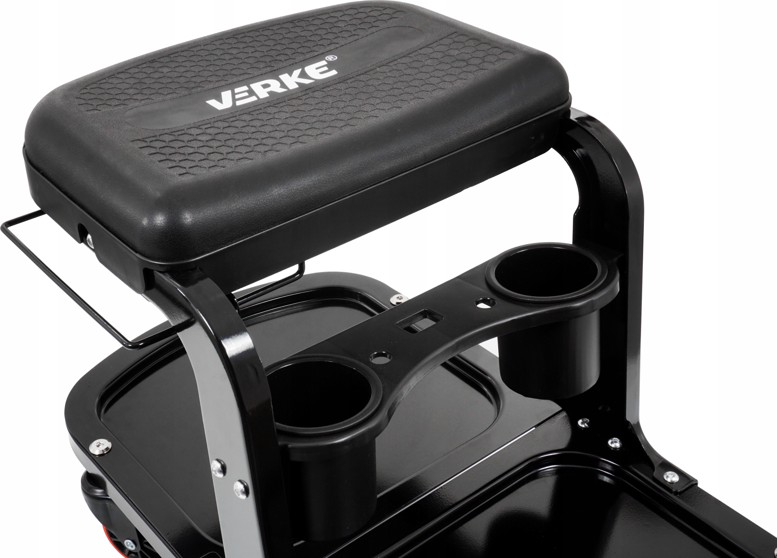 Табурет для мастерской Verke был разработан для использования в профессиональных мастерских, автосервисах, ремонтных мастерских, а также отлично подойдет для домашнего гаража. Практичное решение — оснастить его дополнительной ручкой, куда механик сможет разместить инструменты, используемые во время работы.