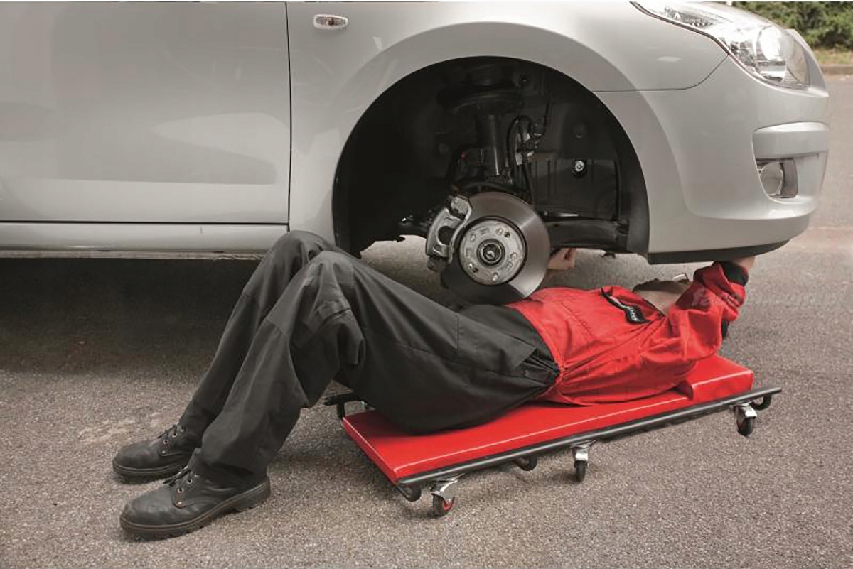 Металлическая конструкция стенда для мастерской делает его незаменимым элементом оборудования автосервиса. Конструкция кушетки для мастерской основана на 6 резиновых опорных колесах, обеспечивающих движение в любом направлении.