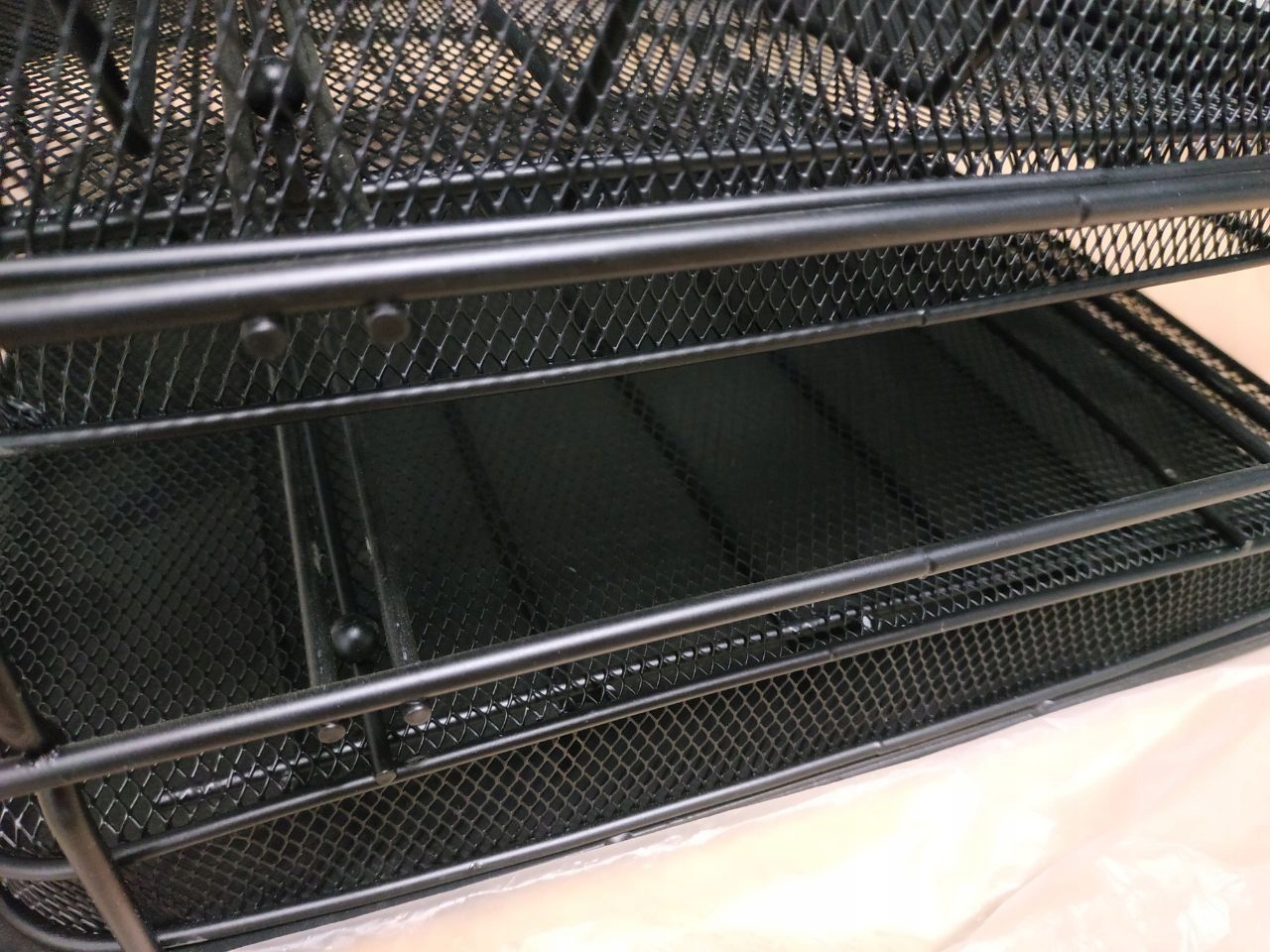 Металлическая сетка на ящиках предотвращает скопление пыли и облегчает уборку.