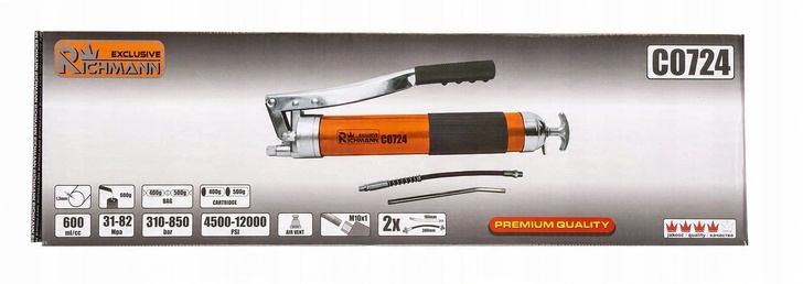 Ручной шприц для смазки с высокой силой нажатия и максимальной емкостью 600 мл.