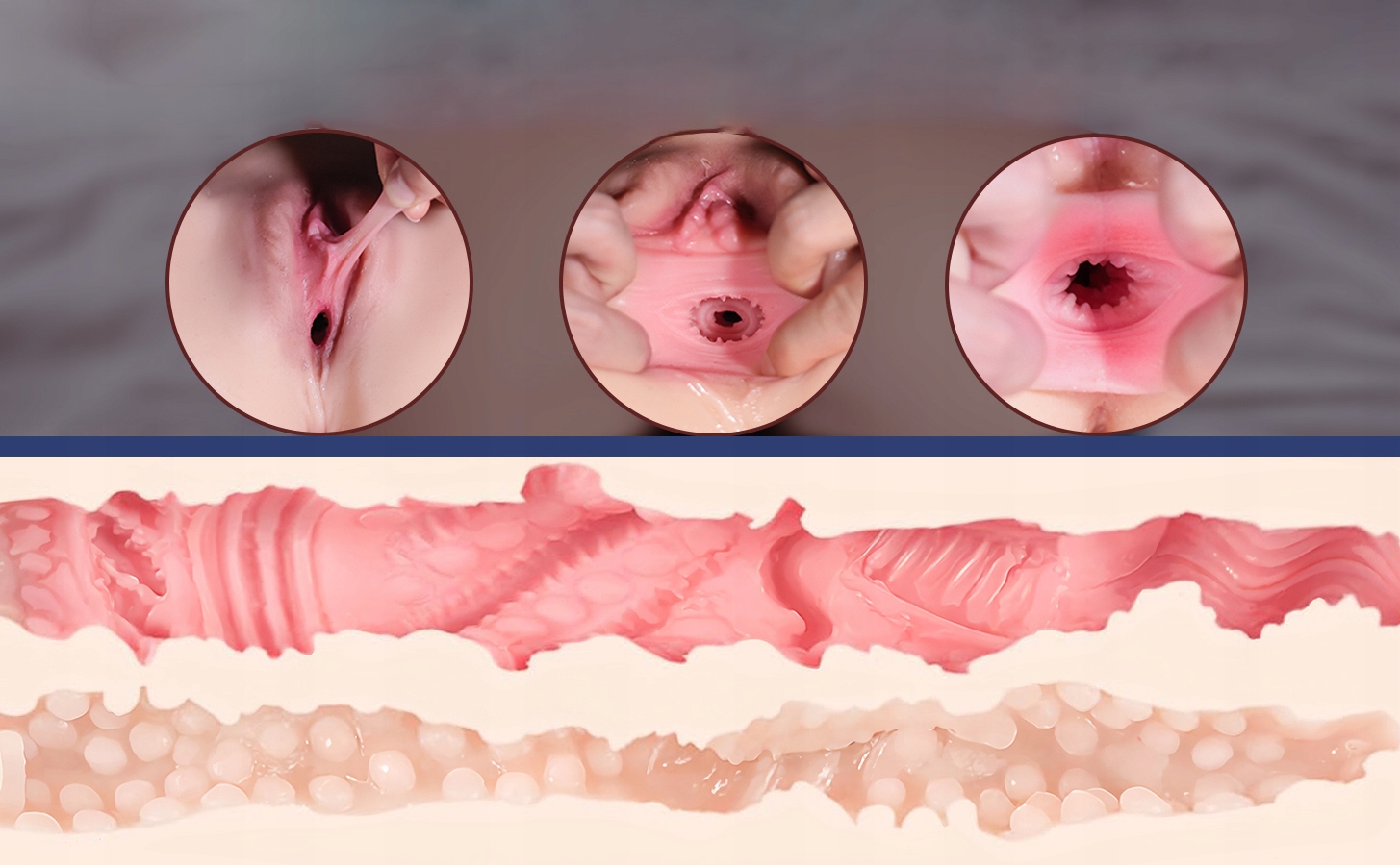 Эта мужская секс-игрушка имеет два отдельных плотно закрытых вагинальных и анальных туннеля. Мягкая стенка влагалища выстлана 6 гибкими крупными бусинами, покрытыми линиями. Бусинки в анусе меньше, чем во влагалище.