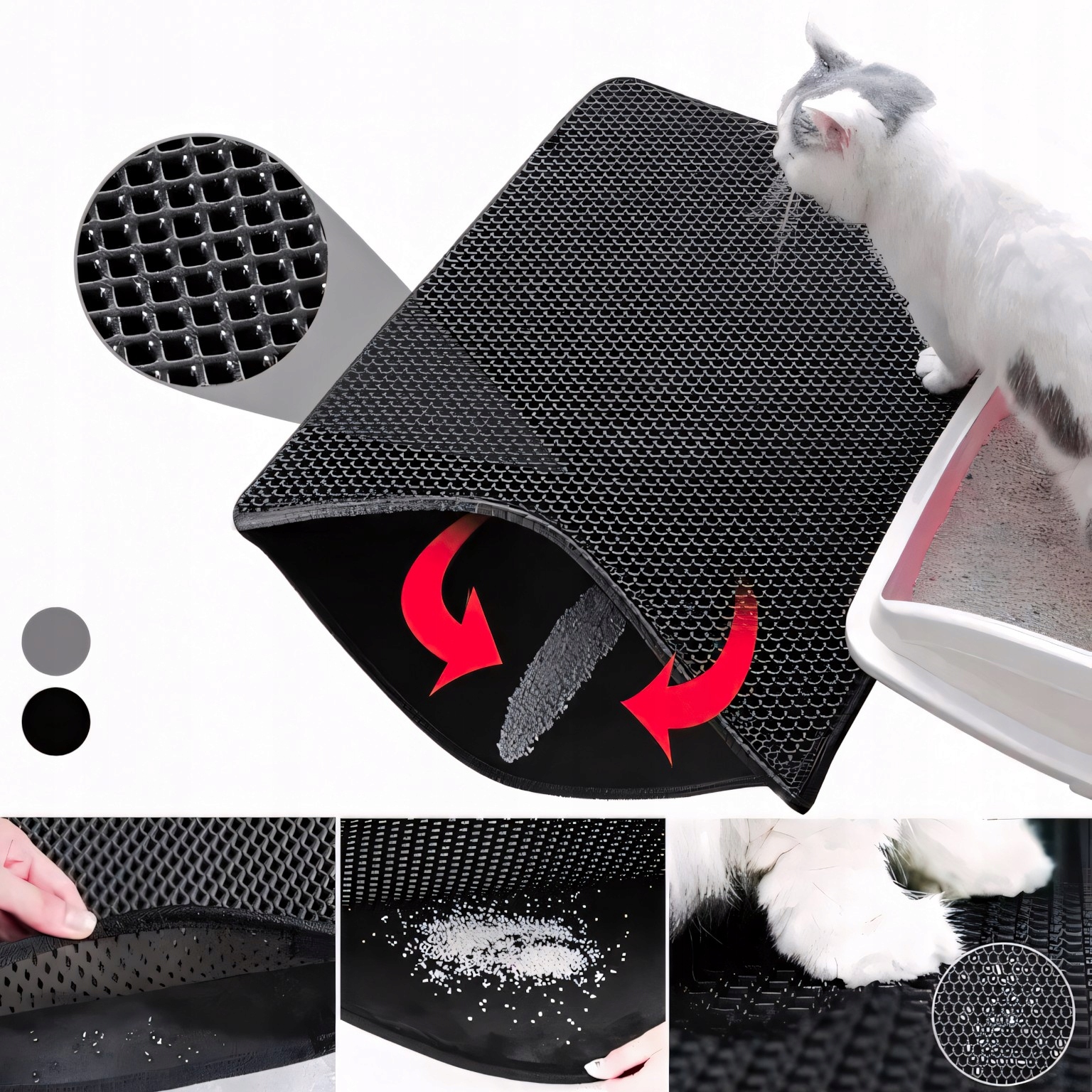 Твердый и прочный матовый под пометом является важным элементом для каждого владельца кошки . Эффективно помогает порядок вокруг кюветы, ограничивая расстояние от гравия, которое прилипает к лапам кошки после выхода из туалета.