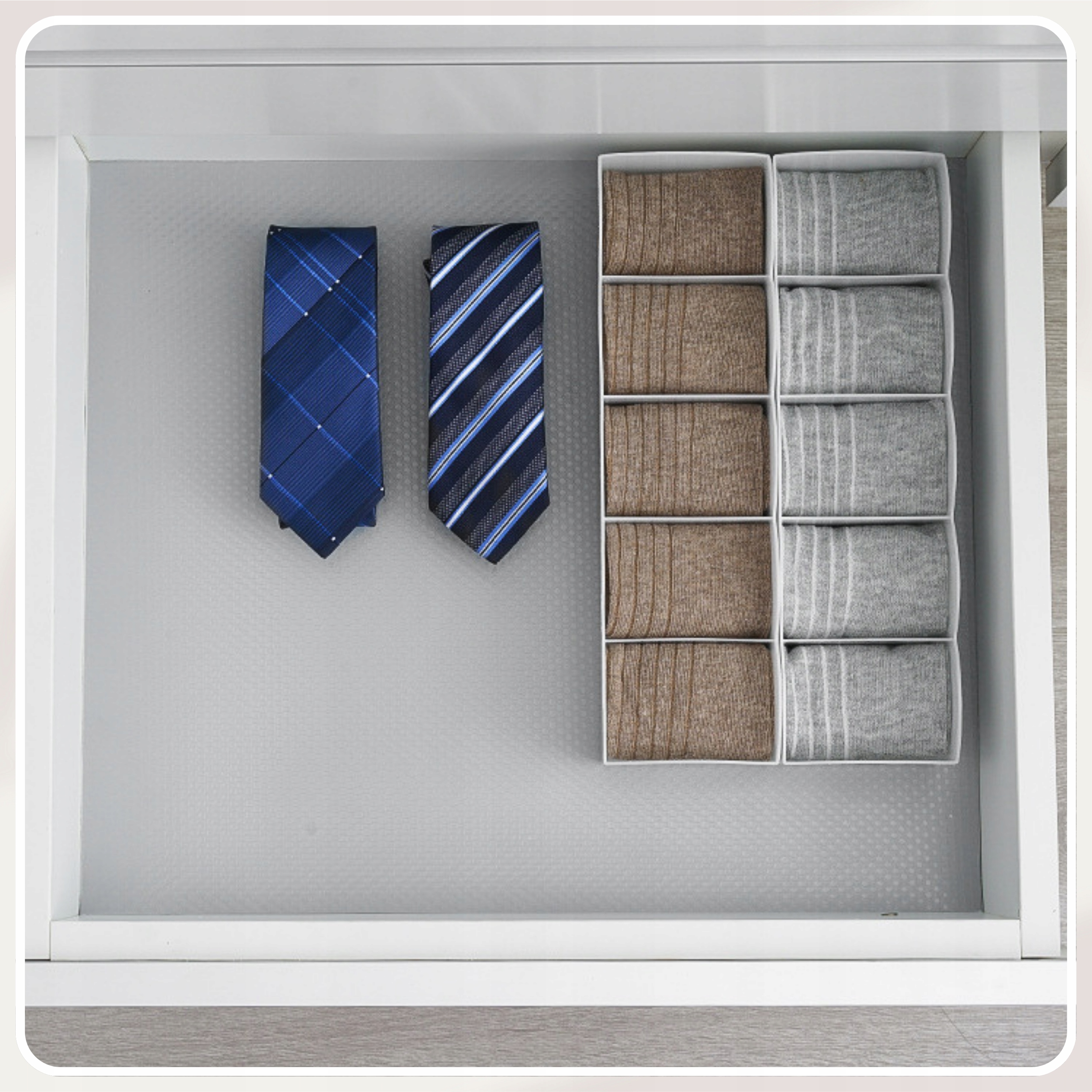 Обеспечивает устойчивость хранящихся предметов, предотвращая их скольжение и шум при открывании и закрывании ящиков и шкафов.