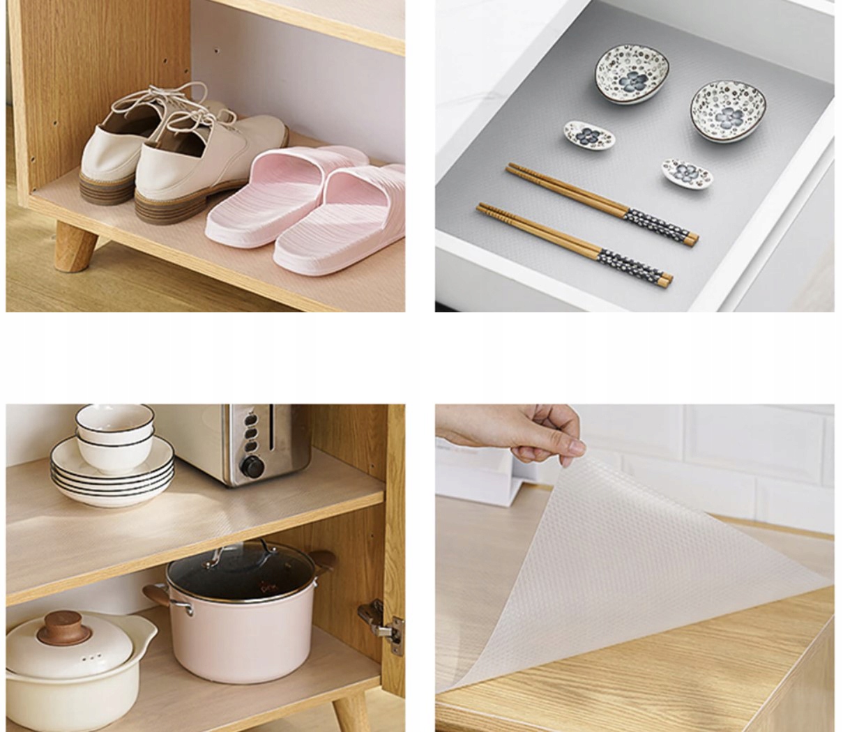 Улучшите свои ящики и шкафы с помощью нашего нескользящего коврика! Добавьте в корзину прямо сейчас и наслаждайтесь порядком и безопасностью в своем доме.