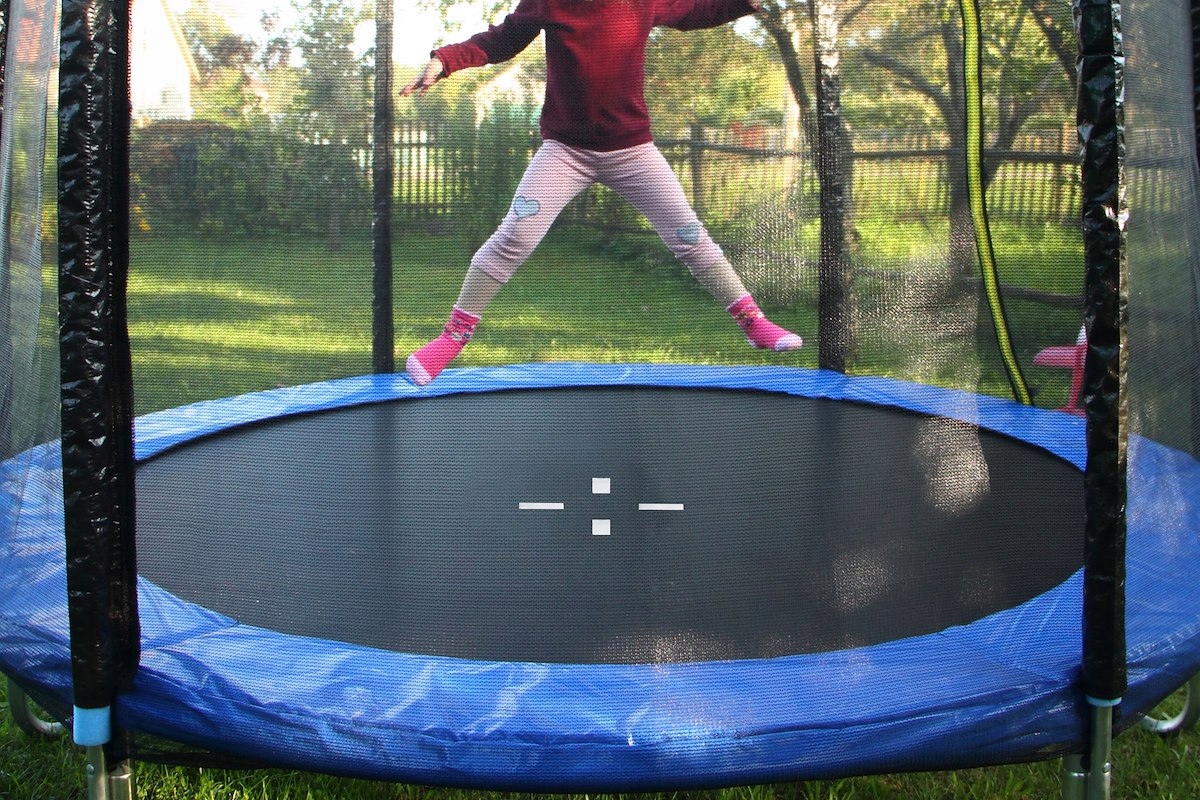 Коврик имеет крючки, которые можно прикрепить к батуту простым и в то же время интуитивным способом с помощью пружины.