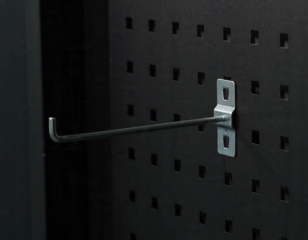 Специально разработан для перфорированных пластин с расстоянием 38 х 38 мм. Этот крюк является идеальным решением для организации рабочего стола. Его практический дизайн гарантирует, что ваши инструменты всегда будут заказаны и легко доступны