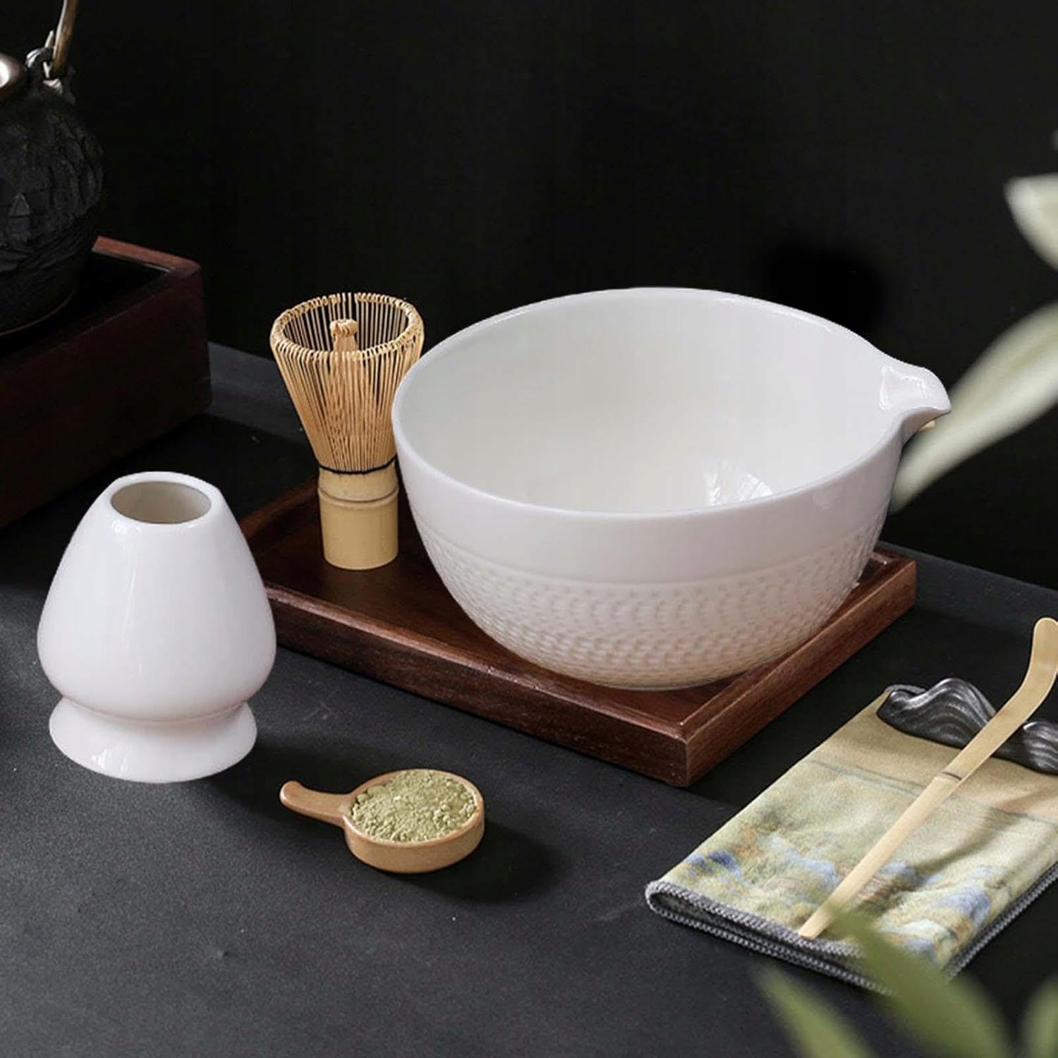 - - Этот набор включает в себя полные инструменты, такие как венчик, ложка, подставка для венчика, чаша для чая, ситечко, чашка, коврик — все необходимое для традиционной чайной церемонии.