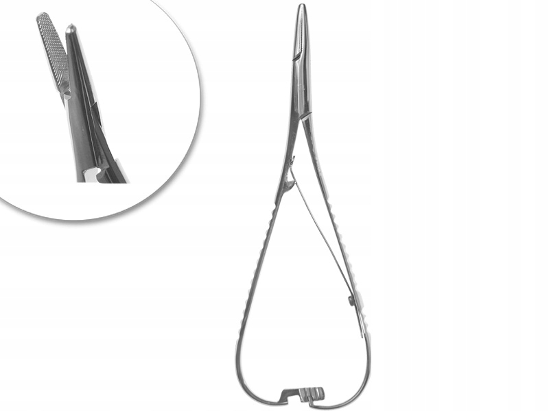 Иглодержатель имеет трехступенчатый зажим. и правильно выполненные внутренние поверхности рабочих частей, благодаря чему обеспечивается надежное удержание и скручивание проволоки во время процедуры.