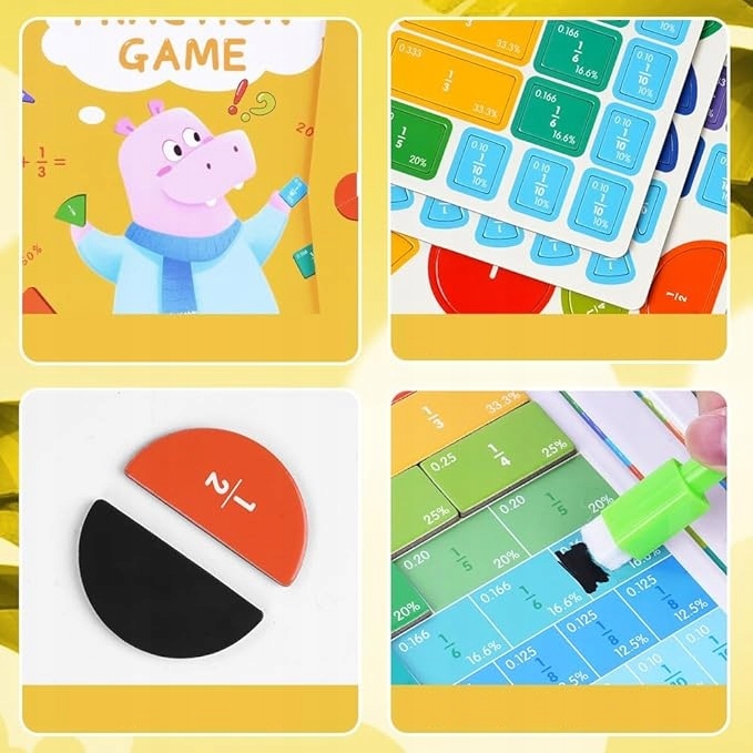 Этот набор - отличный способ быстро и эффективно поглотить фракции. Красочные элементы помогают детям интуитивно понимать разделение чисел, сравнивая ценности и математические операции. Это отличный инструмент как для независимого, так и для класса обучения