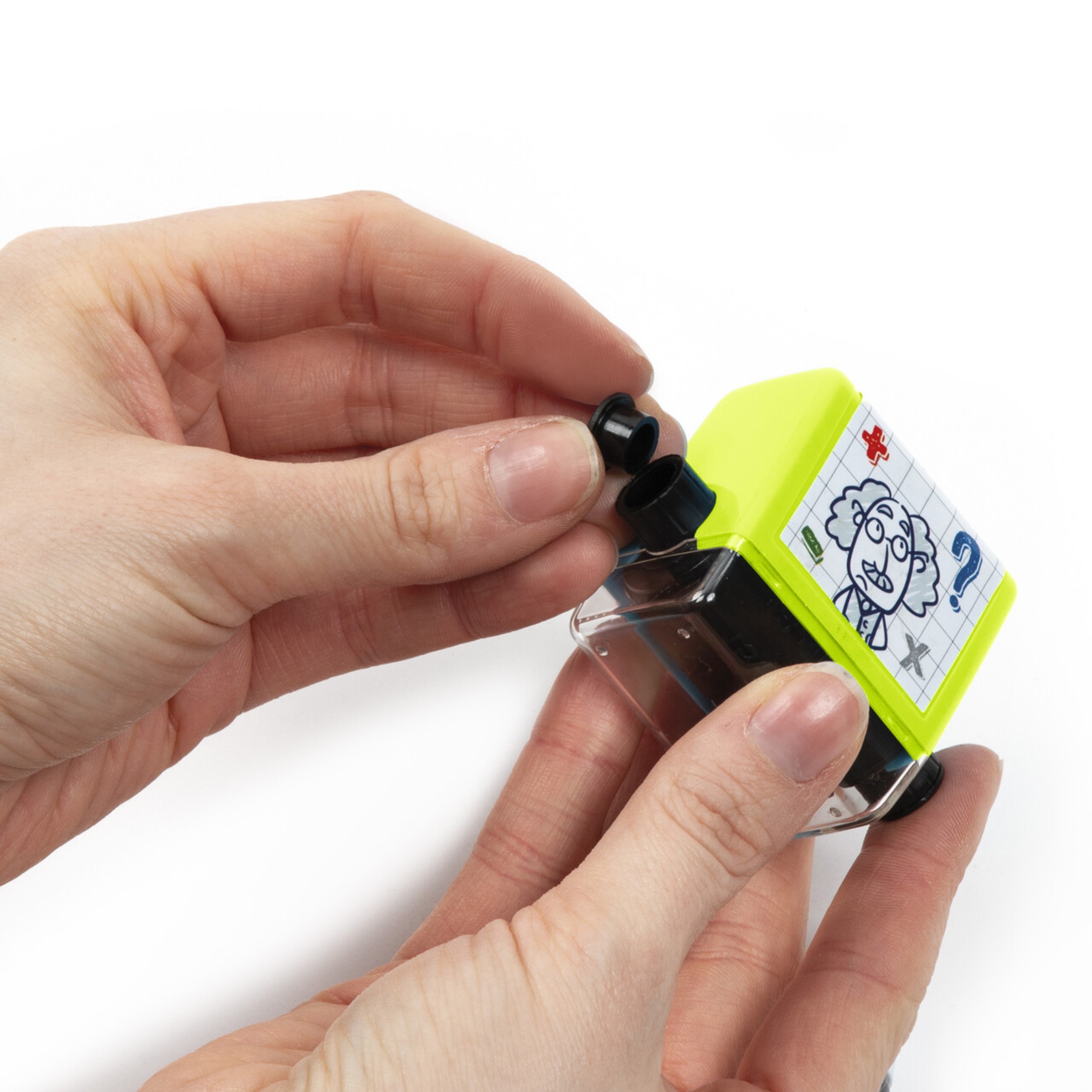 Математический принтер для обучения умножению Kidea. Этот уникальный штамп в виде валика позволяет создавать до 100 различных комбинаций математических операций — достаточно менять настройку цифр с помощью ручки.