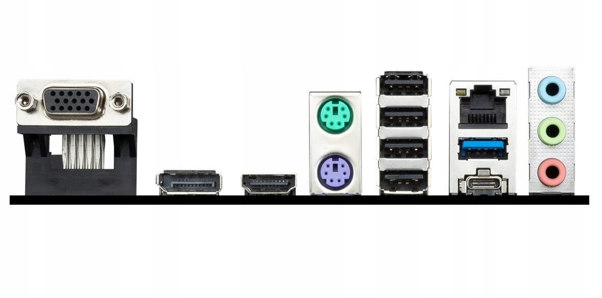 - Внешние разъемы: 1 x USB Type C / 1 x USB 3.2 Gen. 1 Type A / 4 x USB 2.0 Type A / 1 x RJ45 (LAN) 1 Гбит/с / 1 x HDMI / 1 x DisplayPort / 1 x VGA (D-Sub) / 3 x Audio-Jack / 2 x PS/2