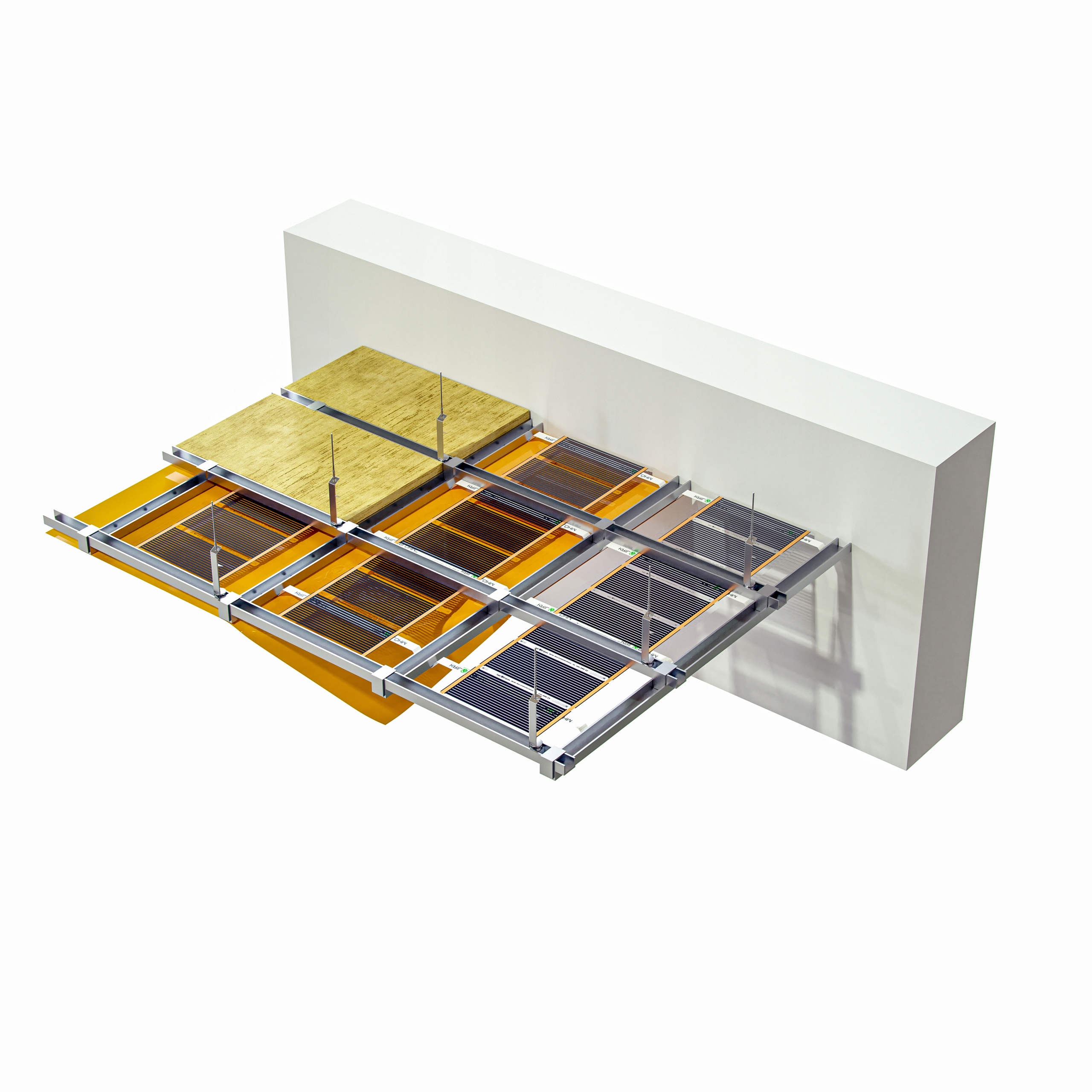 3. Прикрепите нагревательную фольгу к раме скотчем. Теплоизоляция должна полностью заполнить пространство между потолком, а нагревательная пленка должна плотно прилегать к гипсокартону.