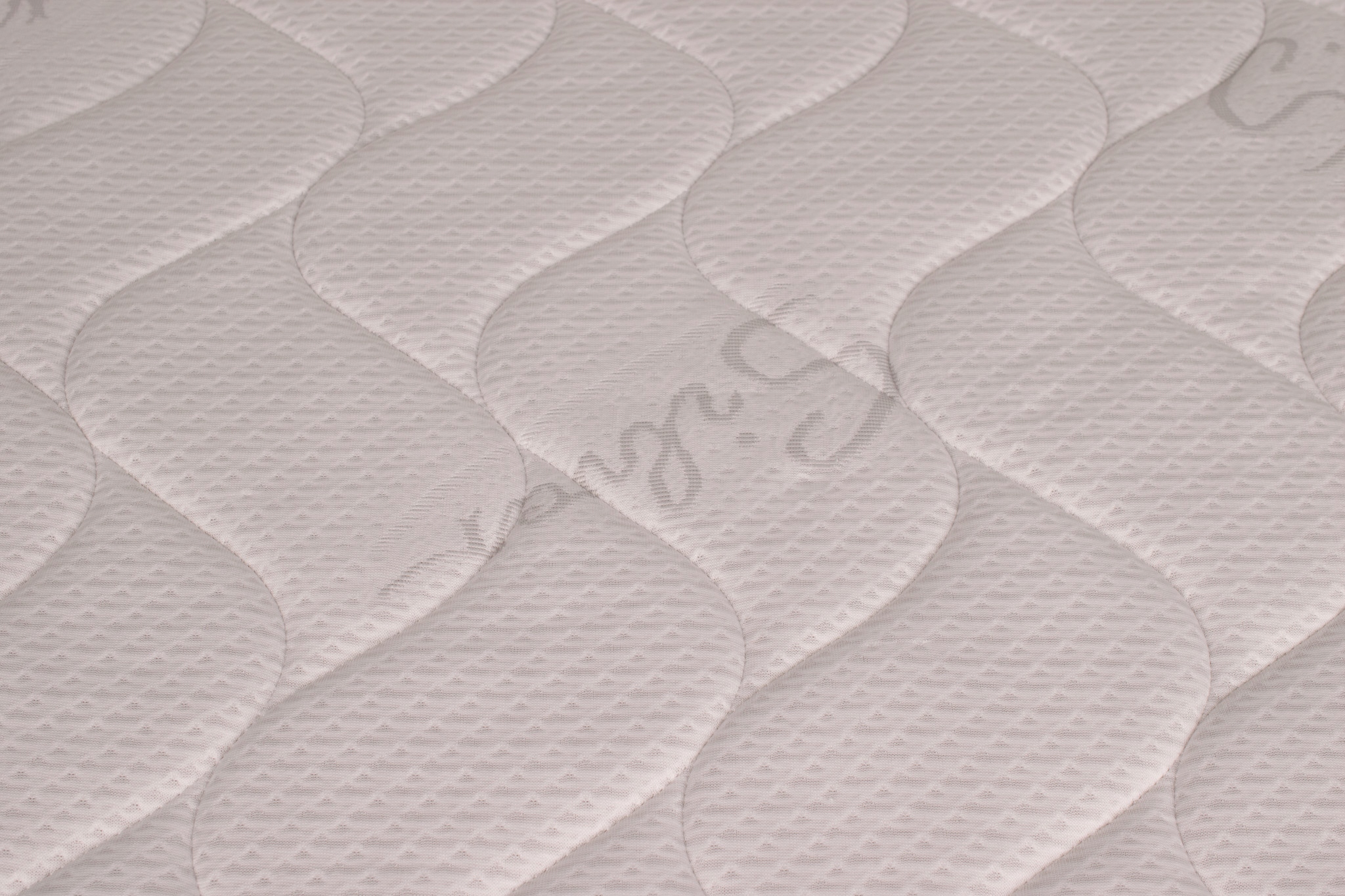 Ткань для матраса Silver представляет собой белый материал с небольшими светло-серыми отверстиями и логотипом, видимым на поверхности. Он мягкий