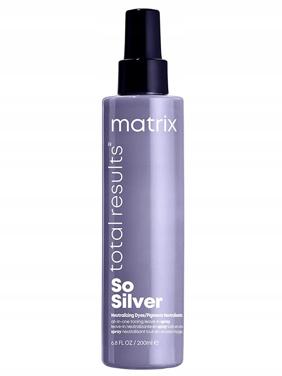Спрей-нейтрализатор Matrix. Формула содержит фиолетовые пигменты, которые прекрасно нейтрализуют проявляющиеся на волосах теплые оттенки. Предназначен специально для светлых, седых и серебристых волос. Облегчает расчесывание, укладку и глубоко увлажняет. Он делает пряди мягкими и блестящими. Он также предотвращает пушение, разглаживает поверхность волос и приятно пахнет.