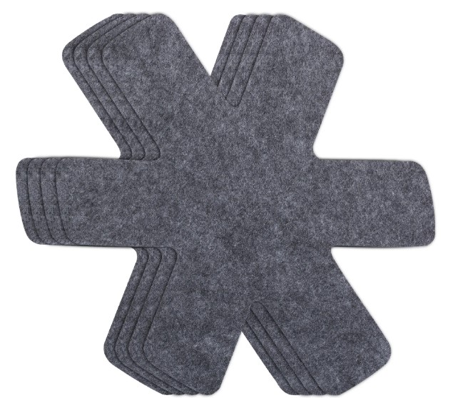 Мягкие войлочные проставки - это простой и эффективный способ защитить покрытие ваших судов. Просто поместите их между кастрюлями или горшками, чтобы предотвратить их повреждение во время хранения.