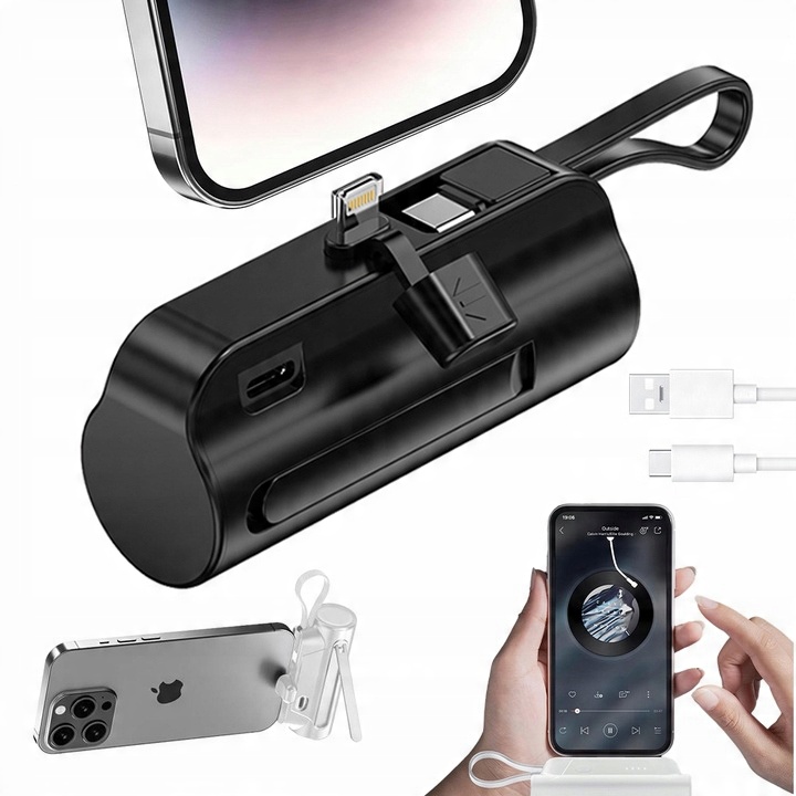 MAŁY POWERBANK 5000 mAh KIESZONKOWY IPHONE/TYP-C CZARNY