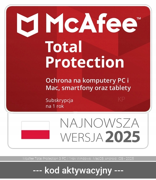 Просматривая «McAfee Antivirus McAfee Total Protection 2024 3 кроки / 12 місяців ESD», вы можете быть уверены, что данный товар из каталога «ПРОГРАММНОЕ ОБЕСПЕЧЕНИЕ» будет доставлен из Польши и проверен на целостность. В цене товара, указанной на сайте, учтена доставка из Польши. Внимание!!! Товары для Евросоюза, согласно законодательству стран Евросоюза, могут отличаться упаковкой или наполнением.