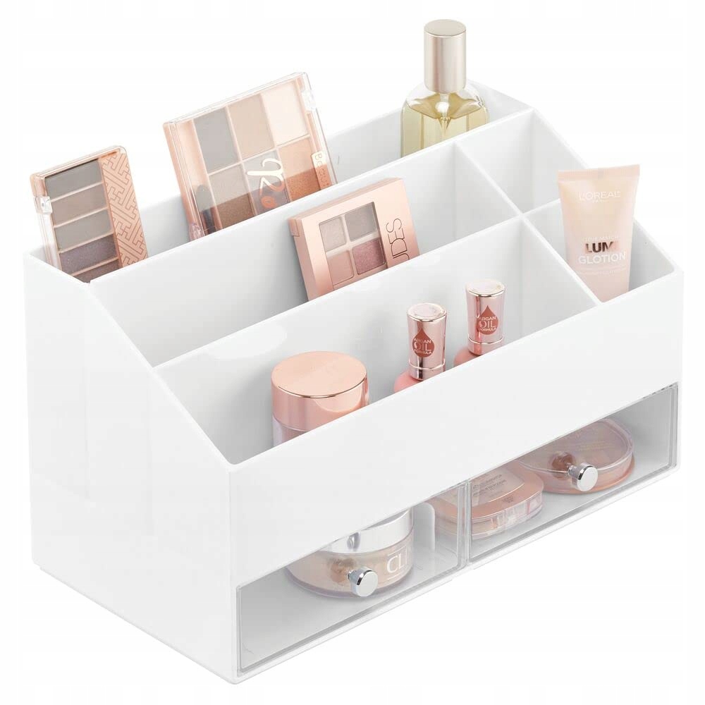 - Хранение косметики: благодаря 5 отделениям и двумя выдвижными ящиками, эта прозрачная коробка является хорошей альтернативой полке для лака для ногтей или держателю для губной помады.