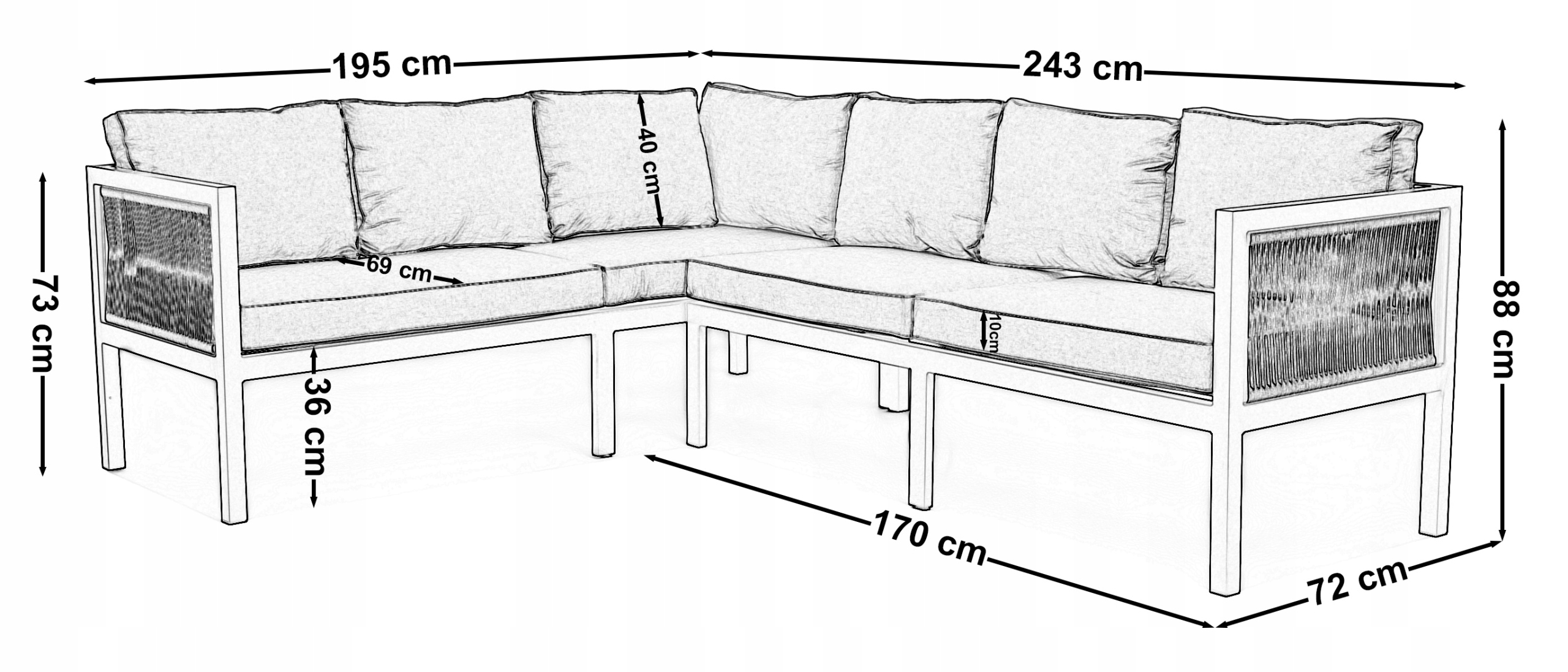 Эта мебель изготовлена с использованием стильных и устойчивых к атмосферным воздействиям алюминиевых рам, которые обеспечивают защиту от ржавчины и коррозии. даже во влажных условиях.