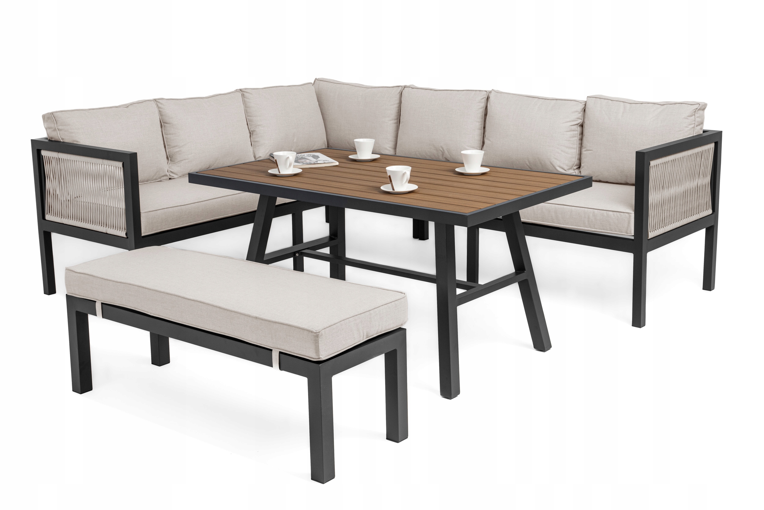 MEBLE OGRODOWE TARASOWE ALUMINIOWE NAROŻNIK STÓŁ PORTOFINO BEŻOWE