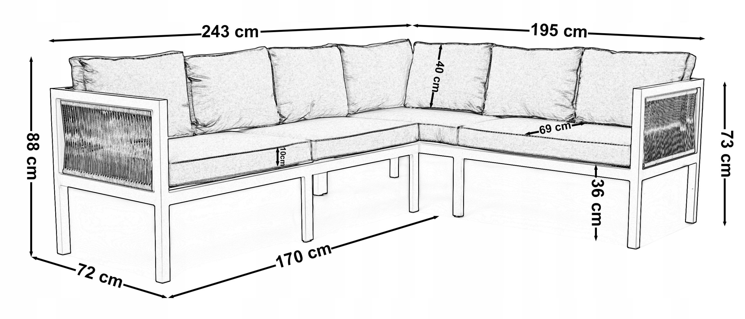 мягкие подушки сделают моменты расслабления под облаком еще более удобными. Элементы высокого качества, изготовленные из алюминия и составных плат , делают его полностью устойчивым к погодным условиям .