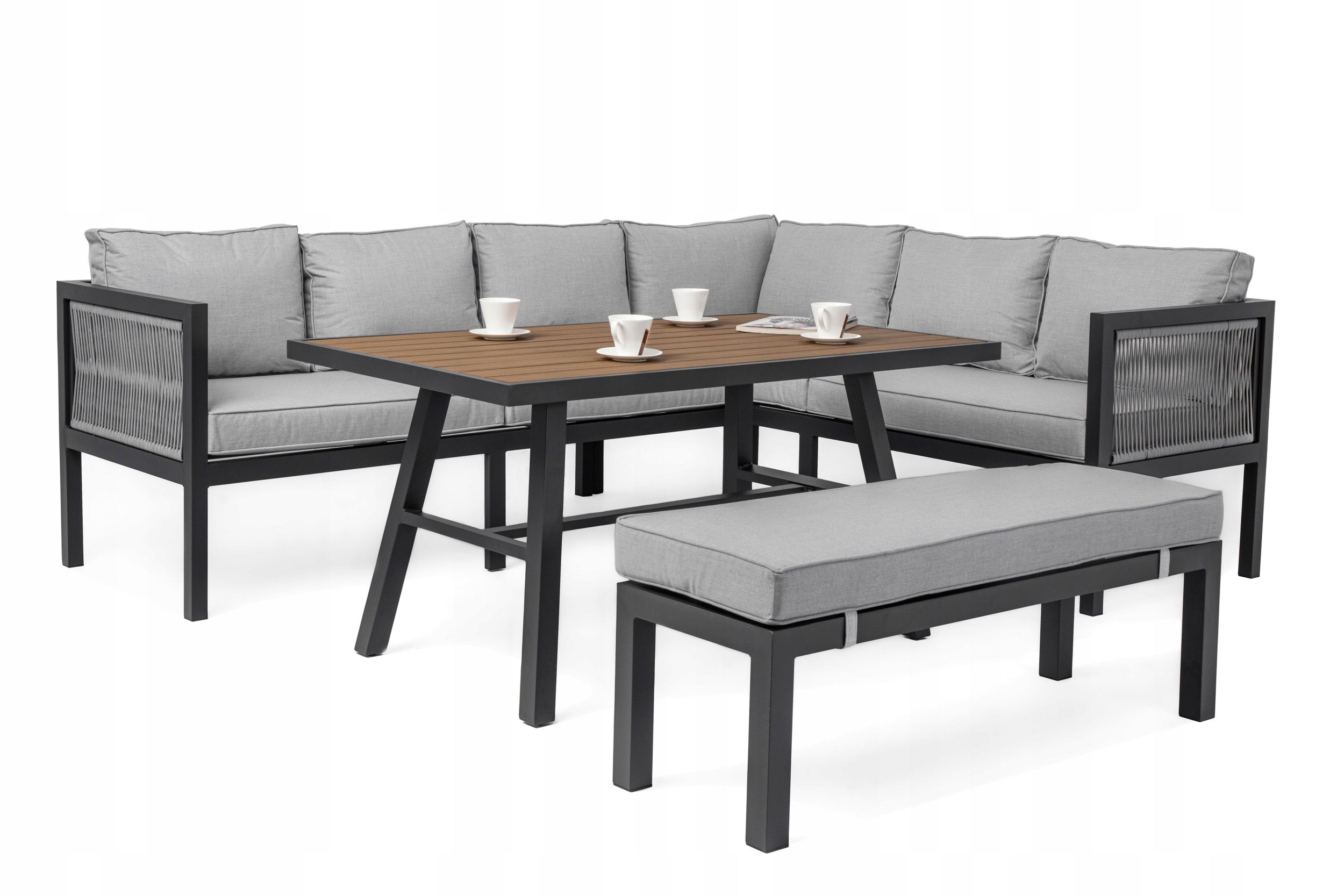 Portofino Новый домашний сад - угловой обеденный набор для каждого дворика, сада или террасы. Этот угловой комплект сочетает в себе диван, скамейку и обеденный стол 2 x 3 -Person. Он идеально подходит для отдыха с друзьями и семьей в саду, а также для еды на свежем воздухе. Отличное стилистическое дополнение к этому набору угловых диванов удобно османской.