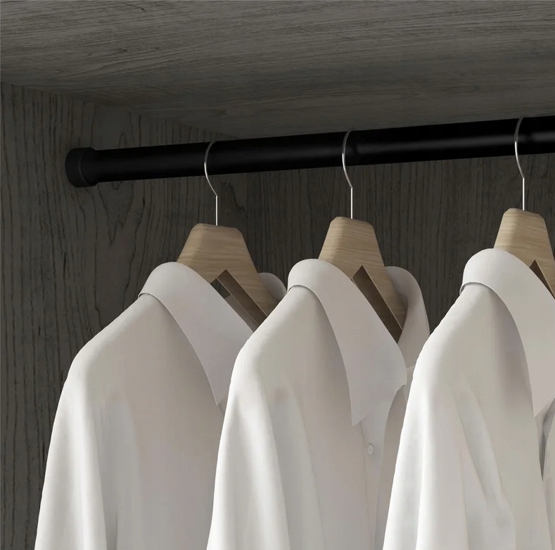 - дополнительная штанга для вешалок в гардеробе или гардеробной. Установив 2 штанги, вы получаете гораздо больше места, лучше используете пространство в шкафу и меньше мнетесь.