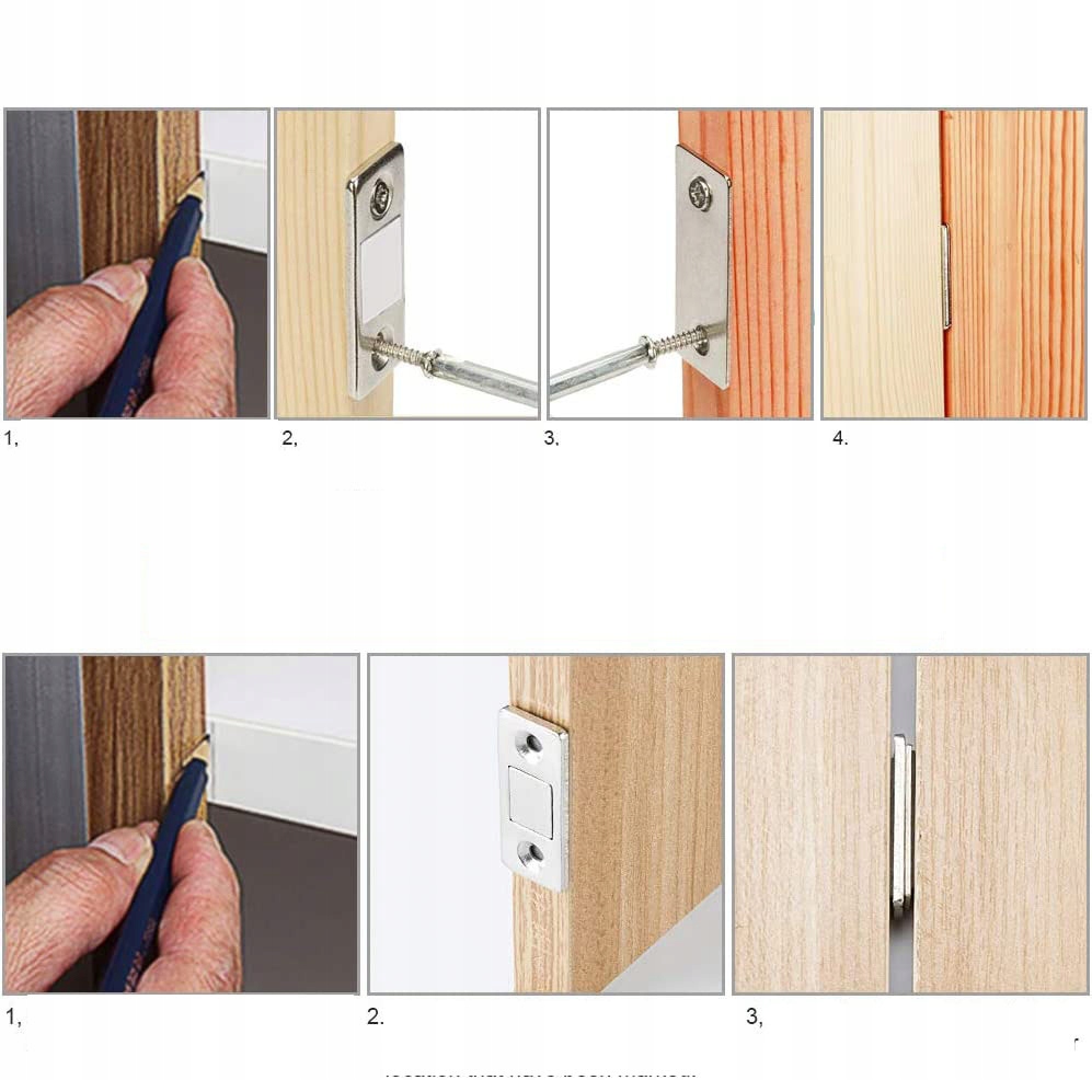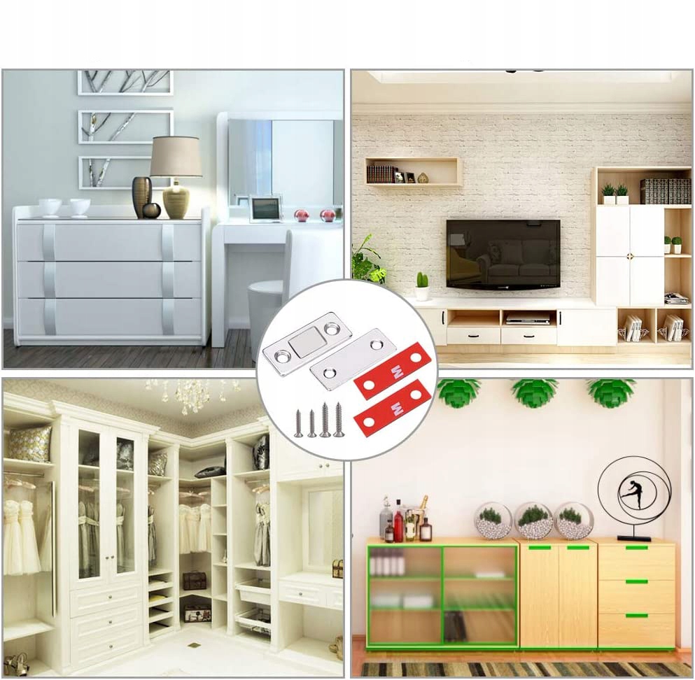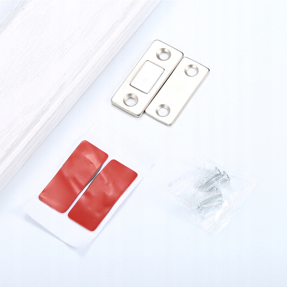 🌟 в комплект входят 4 комплектамагнитных защелок для шкафов-купе, в каждом комплекте 2 кусочка двустороннего клея и 4 винта. Способ установки можно выбрать в соответствии с вашими потребностями.