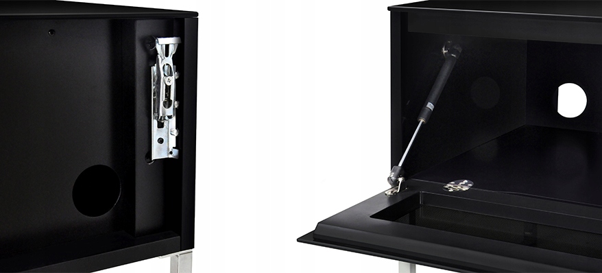 Основным преимуществом данного изделия является закрытая полка с распашной дверцей, позволяющая спрятать технику внутри.