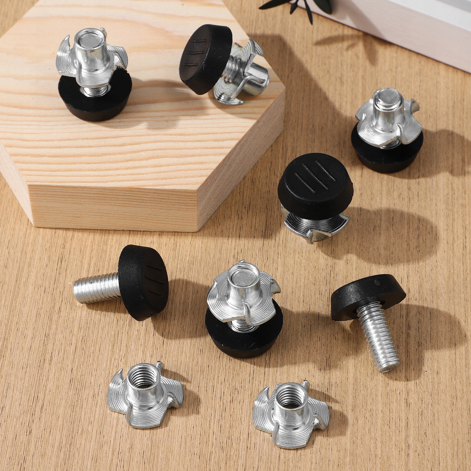 Наши мебельные ножки изготовлены из железа — прочного материала, который выдерживает тяжелую мебель, такую как кровати, диваны, шкафы и многое другое. Установка проста: просто просверлите отверстие в ножке мебели, затем прикрепите к нему этот винт, и вы сможете отрегулировать нужную высоту.