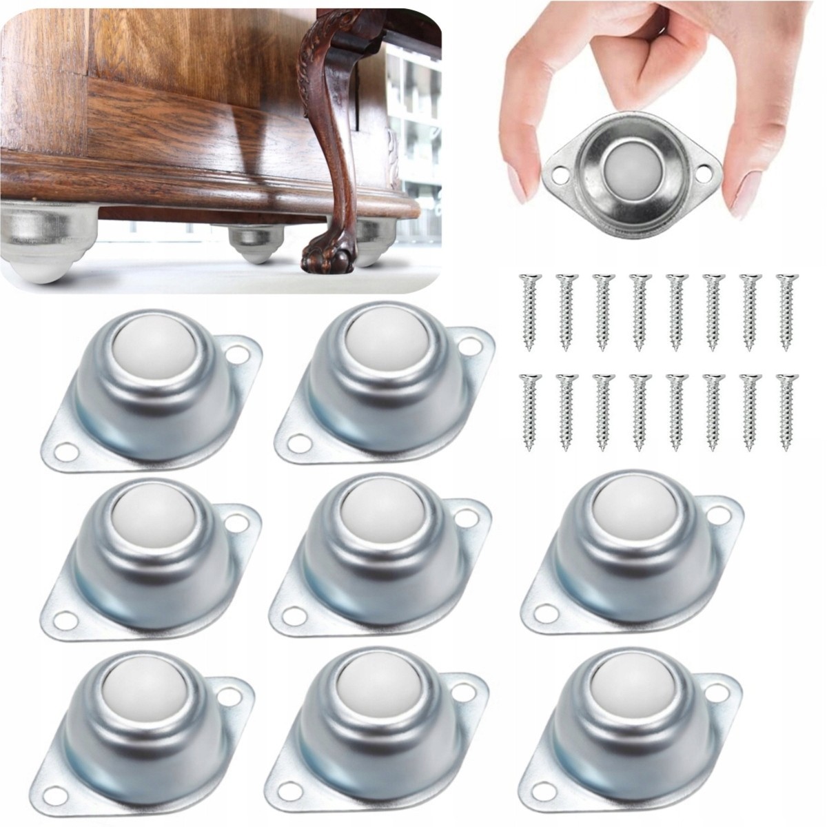 МЕБЕЛЬНЫЙ ШАРИКОВЫЙ РОЛИКИ 360 ГРАДУСОВ БЕСШУМНЫЕ МЕБЕЛЬНЫЕ КОЛЕСА РОЛИКИ 16мм 8 шт.