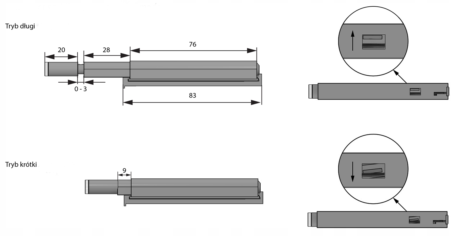 Это идеальное решение для открывания ящиков и фасадов мебели без ручек. Это позволяет эффективно открывать переднюю часть, нажав на нее. Бампер выглядит очень эстетично, поэтому впишется в любую мебель. Используется для открывания фасадов со стандартными механическими петлями.