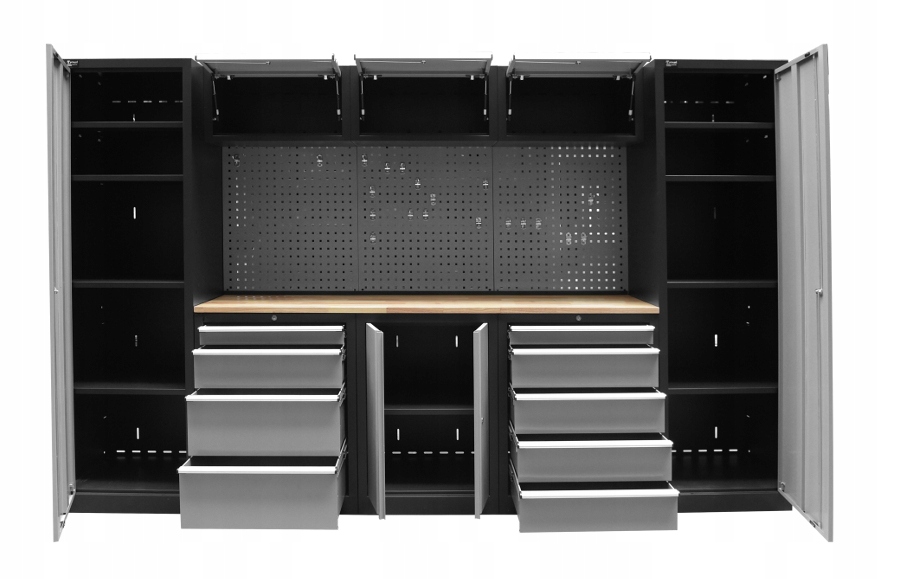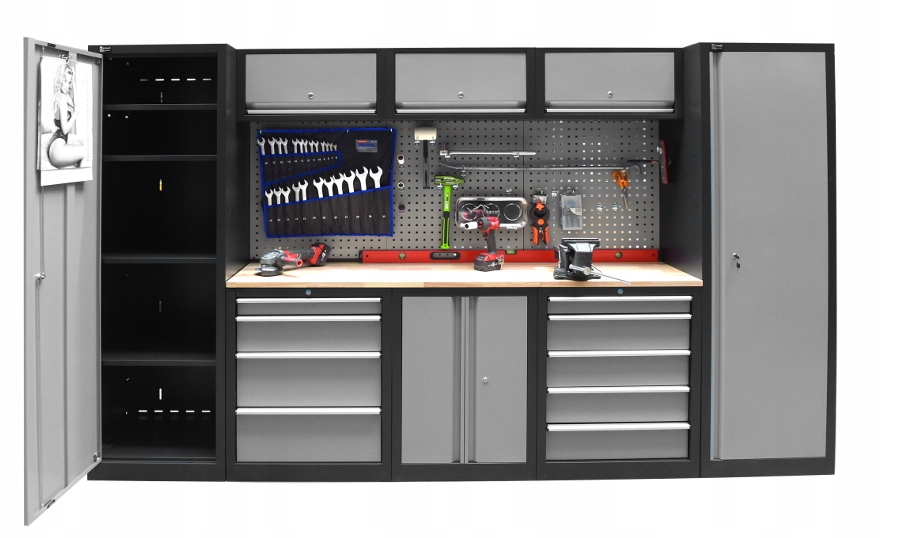 МЕБЛІ ДЛЯ МАЙСТЕРНІ КНИЖКОВА ШАФА 325см РОБОЧИЙ СТІЛ ШАФА ДЛЯ ІНСТРУМЕНТІВ