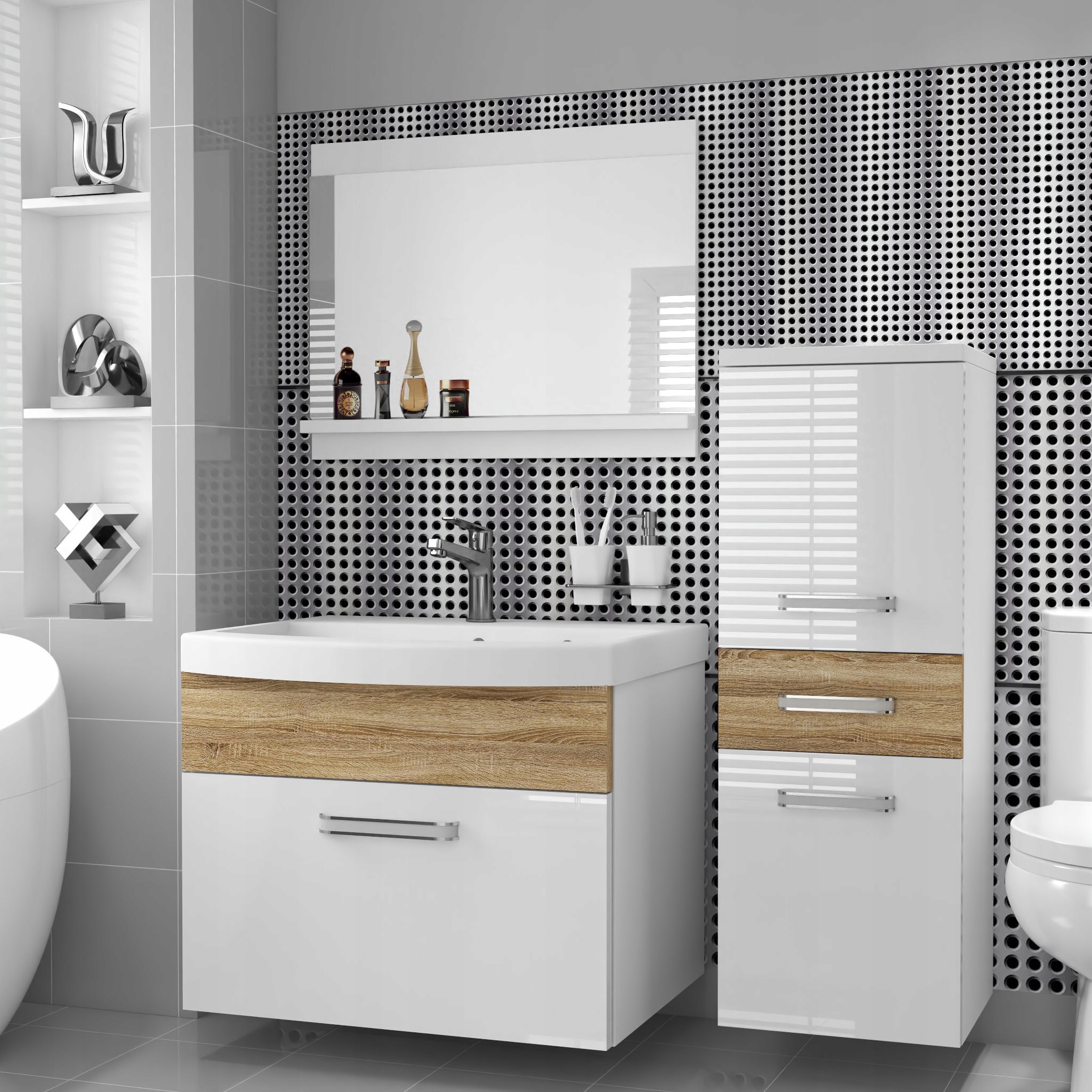 Мебель для ванной комнаты с ЗЕРКАЛОМ и ГЛЯНЦЕВОЙ РАКОВИНОЙ